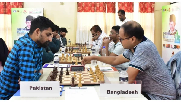 সাইফ পাওয়ারটেক লিমিটেডের পৃষ্ঠপোষকতায় ছয় জাতি শেখ রাসেল কাপ দলগত দাবা চ্যাম্পিয়নশিপের দ্বিতীয় রাউন্ড শেষে পূর্ণ ৪ পয়েন্ট নিয়ে পয়েন্ট তালিকায় এককভাবে শীর্ষে রয়েছে বাংলাদেশ। নেপাল, শ্রীলংকা, মালদ্বীপ ও পাকিস্তান ২ পয়েন্ট করে নিয়ে মিলিতভাবে দ্বিতীয় স্থানে রয়েছে। দ্বিতীয় রাউন্ডে আরও পড়ুন