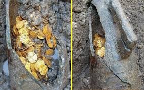 মাটি খুঁড়তেই স্বর্ণমুদ্রাভর্তি কলস পেল দুই কিশোর। ইসরায়েলের ইয়াভেন শহরের কাছে পাওয়া এ স্বর্ণমুদ্রাগুলো ছিল দুর্লভ ও প্রাচীন আমলের। প্রায় সাড়ে চারশ স্বর্ণমুদ্রা কলসটিতে ছিল বলে জানা গেছে। প্রত্নতাত্ত্বিকদের মতে