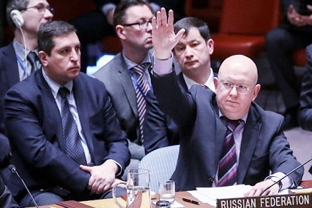 জাতিসংঘ নিরাপত্তা পরিষদে সিরিয়ার সার্বভৌমত্ব লঙ্ঘনকারী একটি প্রস্তাবে ভেটো দিয়েছে চীন ও রাশিয়া। ওই প্রস্তাবে সিরিয়ার কেন্দ্রীয় সরকারের অনুমতি ছাড়াই দেশটিতে মানবিক ত্রাণ পাঠানোর কথা বলা হয়েছিল। খবর বিবিসি ও