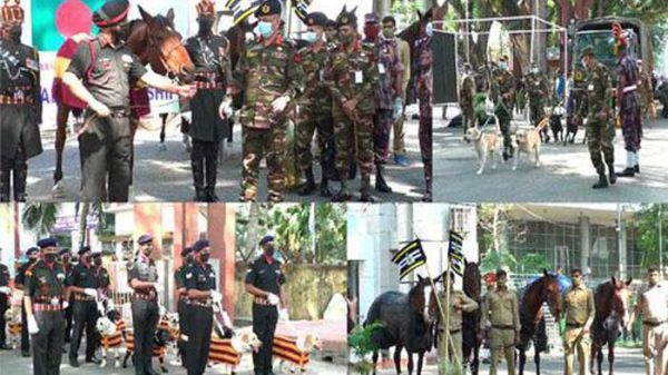 শুভেচ্ছা উপহার হিসেবে প্রশিক্ষণপ্রাপ্ত ২০টি ঘোড়া ও ১০টি কুকুর বাংলাদেশ সেনাবাহিনীকে উপহার দিয়েছে ভারতীয় সেনাবাহিনী। বেনাপোল চেকপোস্ট দিয়ে এসব ঘোড়া ও কুকুর বাংলাদেশে আনা হয়েছে। মঙ্গলবার দুপুর ১২টার সময় ভারতের