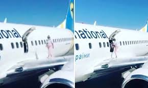 হাওয়া খেতে উড়োজাহাজের পাখায় উঠে পায়চারি করলেন নারী যাত্রী!