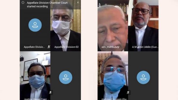 দেশের সবোর্চ্চ আদালতে এই প্রথমবারের মত ভিডিও কনফারেন্সিংয়ের মাধ্যমে শুরু হয়েছে বিচার কাজ। আজ সকাল ১০ টা থেকে এ বিচার কাজ চলছে। প্রধান বিচারপতি সৈয়দ মাহমুদ হোসেনের নেতৃত্বে আপিল বিভাগের