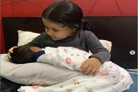 জিভার কোলে শুয়ে রয়েছে একরত্তি। ছোট্ট শরীরখানি জড়ানো সাদা প্রিন্টেড কাপড় দিয়ে। আর মুখটা জিভার দিকে। সামাজিক মাধ্যমে দুটি ছবি পোস্ট করেছেন খোদ সাক্ষী ধোনি। আর তারপর থেকেই শুরু হয়েছে