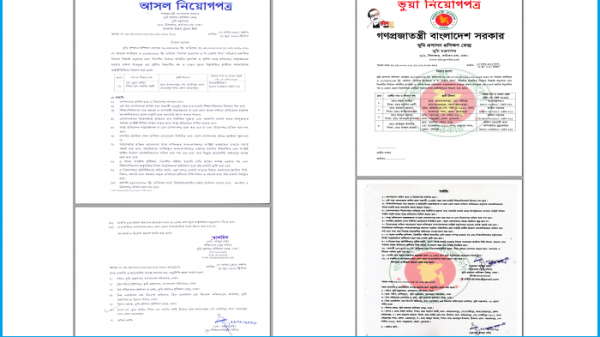 জাতীয় তথ্য বাতায়নের (পোর্টাল) আওতাধীন ওয়েবসাইটের আদলে ভুয়া ওয়েবসাইট তৈরি করে ভূমি মন্ত্রণালয়ের আওতাধীন সংস্থার ভুয়া নিয়োগপত্র ইস্যু করে প্রতারণা করার চেষ্টা করেছে প্রতারক চক্র। রোববার ভূমি মন্ত্রণালয়ের আওতাধীন ভূমি