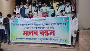কলেজ প্রতিষ্ঠার দাবিতে স্বাস্থ্য অধিদফতরে ফিজিওথেরাপি শিক্ষার্থীদের অবস্থান