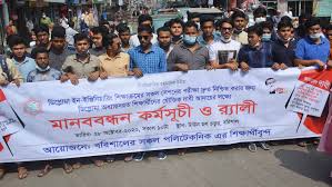 ৪ দফা দাবিতে বরিশালে পলিটেকনিক ইন্সটিটিউট শিক্ষার্থীদের মানববন্ধন